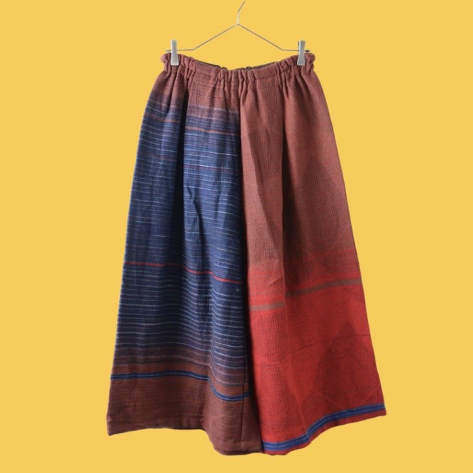 たくさんの色が使われているのですが、落ち着いた印象を受けます。大地や海を感じるような・・・そんなお洋服。