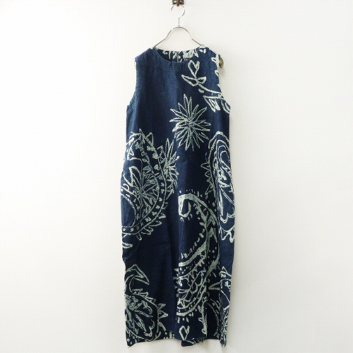 インディゴ染めにプリントを重ねた存在感のあるワンピース。