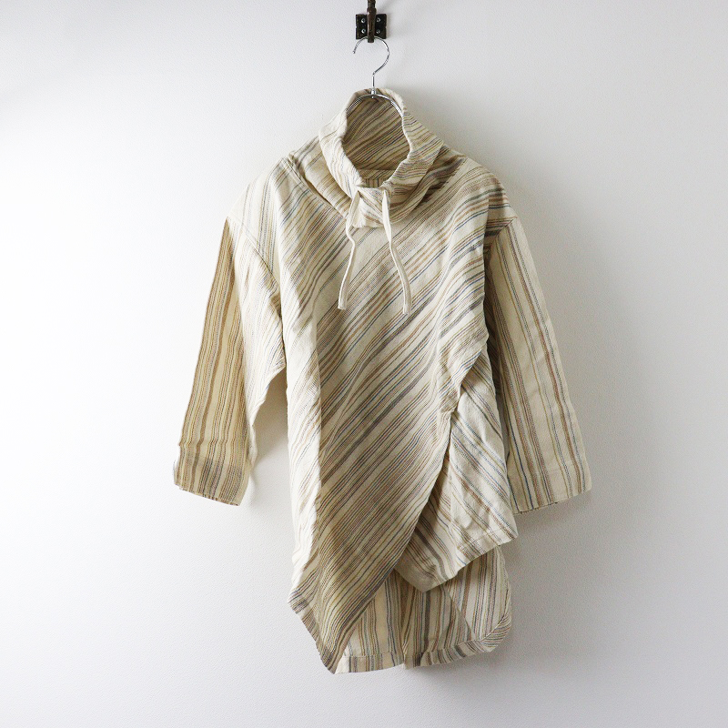 うさと USAATO 手織り 天然草木染め マルチストライプ ハイネックブラウス