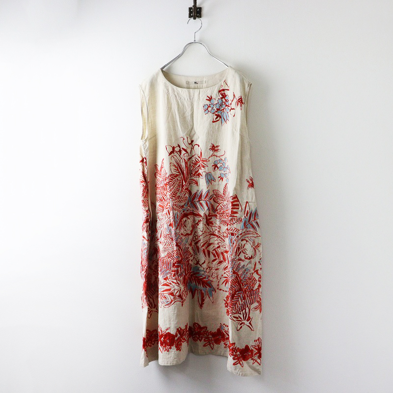 45R フォーティファイブアール リネン夏草プリント ノースリーブワンピース