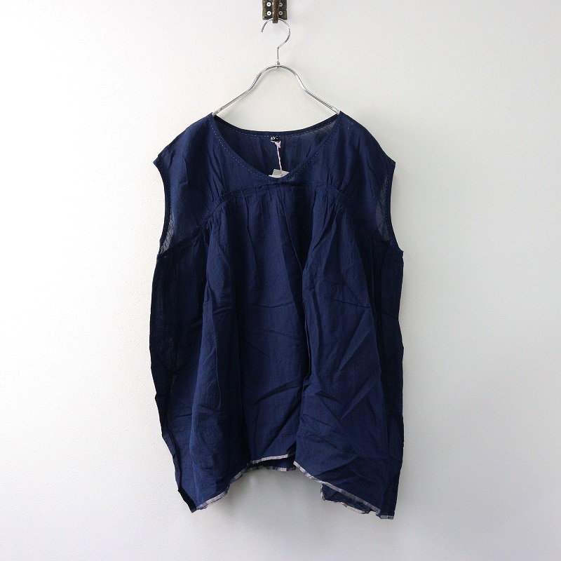 45R 45rpm フォーティファイブアール インディゴ染めカディノースリーブブラウス