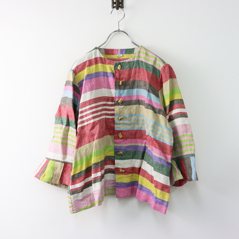 フォーティーファイブアール 45R 45rpm リネンツイルのマルチ縞レフアブラウス