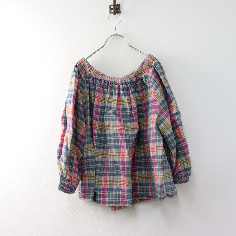 45R フォーティファイブアール リネンマドラスのシャーリングブラウス