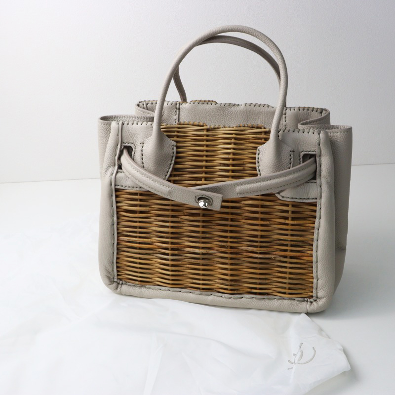 エバゴス ebagos リネンレース被せ レザーハンドル 紅籐 かごバッグ