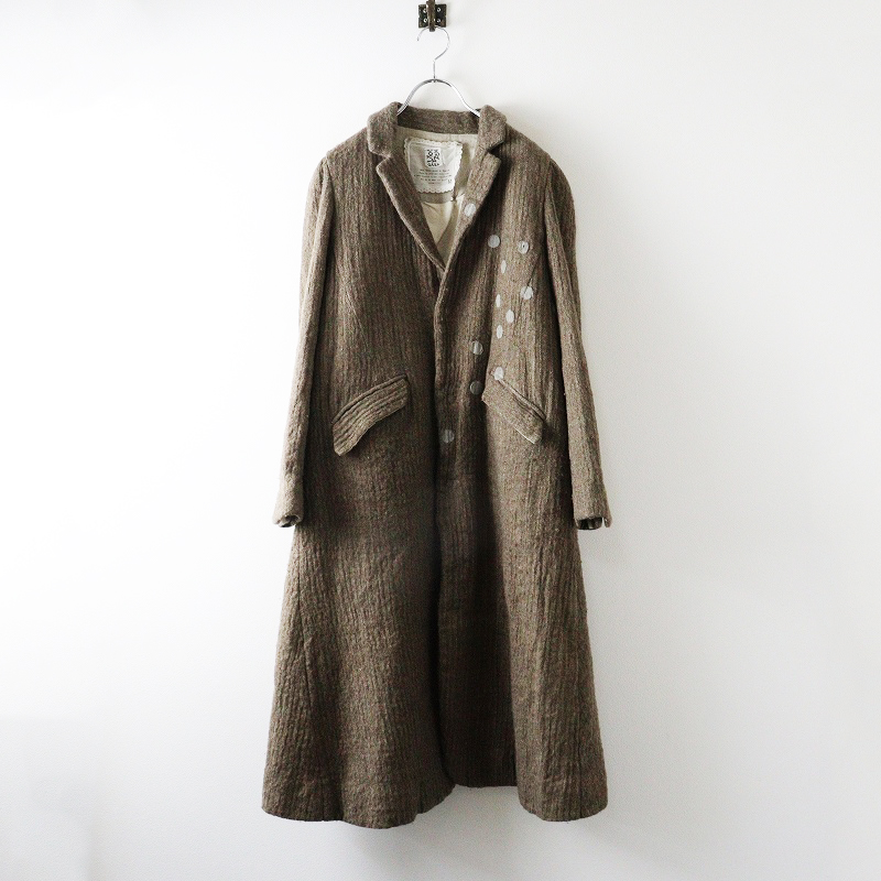 ガサ gasa コットンウール ヘリンボーン織り ロングチェスターコート
