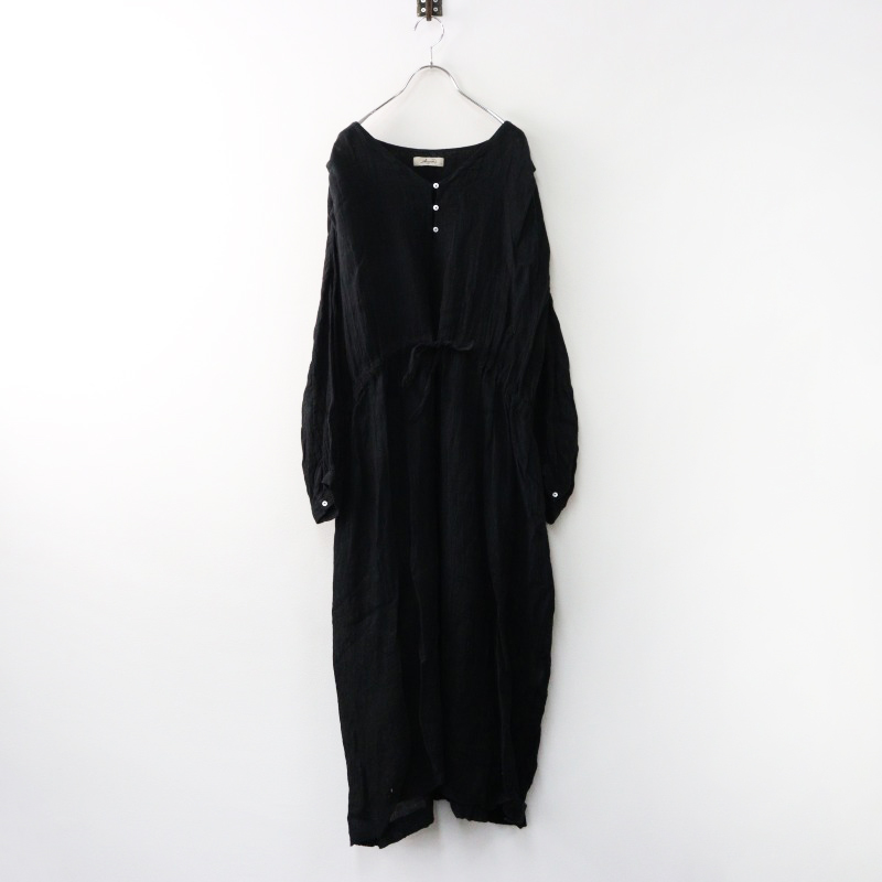 イチアンティークス ichi Antiquite’s 染色加工 リネンガーゼウエストブラウジングワンピース