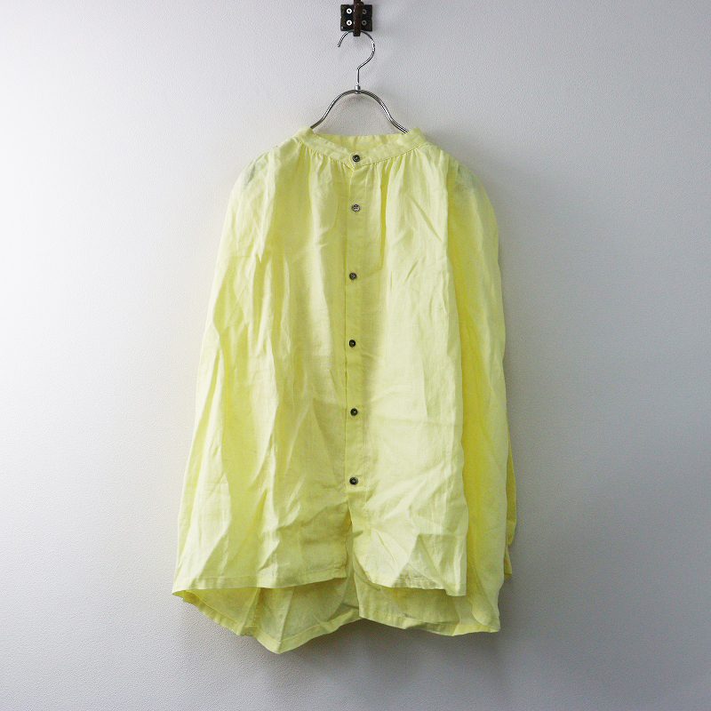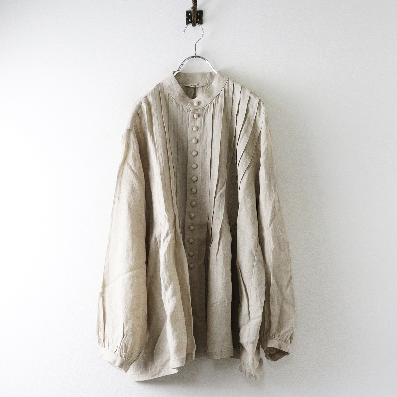 イチアンティークス ichi Antiquites リネンギャザーバンドカラーブラウス
