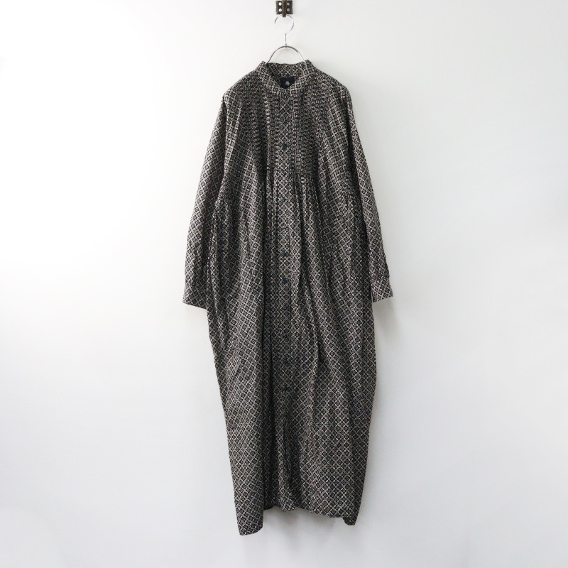 メゾンドソイル maison de soil 製品染めコットンピンタックバンドカラーシャツワンピース