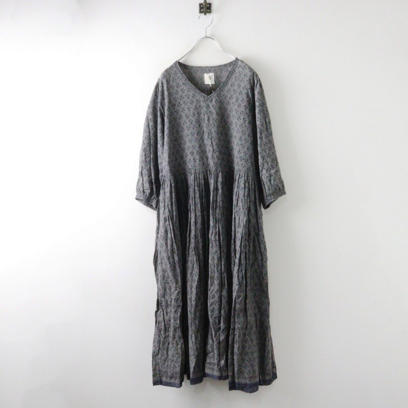 メゾンドソイル maison de soil ゲンチアナフラワーブロックプリントVネックキルティングワンピース