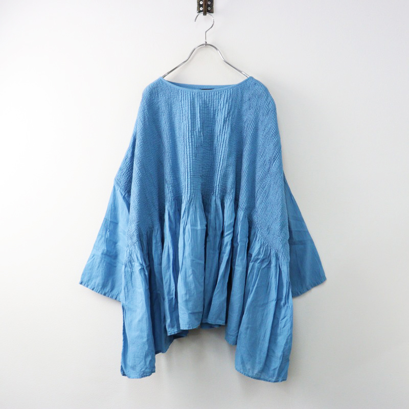 メゾンドソイル maison de soil コットン ドット カシュクール ギャザーブラウス