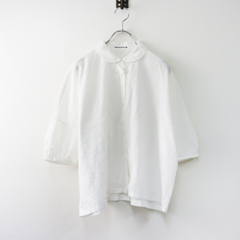 ミナペルホネン mina perhonen laboratory ワンポイント刺繍入 半袖 ラウンドカラーシャツ