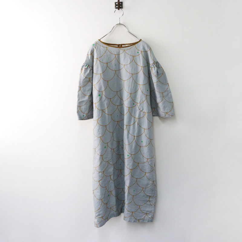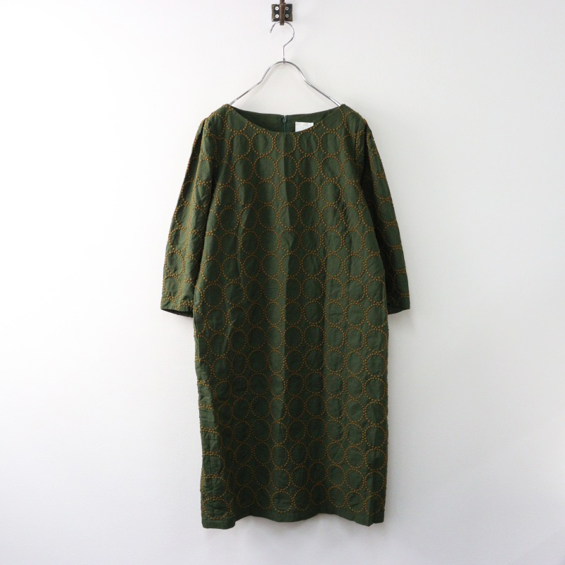 ミナペルホネン ランドリー mina perhonen chum 刺繍 コットン5分袖ロングワンピース