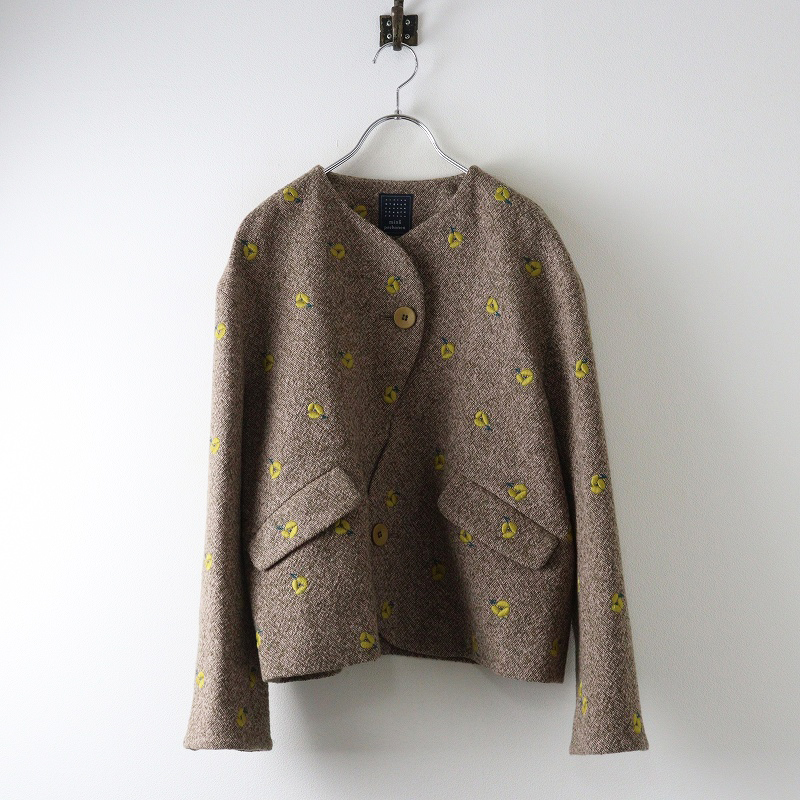 ミナペルホネン mina perhonen ohayo ツイード 刺繍 ノーカラー ジャケット