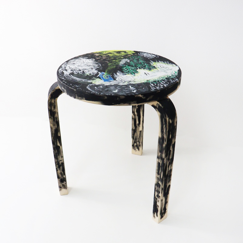 世界に1つ! 未使用 超希少 限定品 ミナペルホネン mina perhonen 皆川明さんが絵を描いたスツール 60 「光の家」 直筆絵