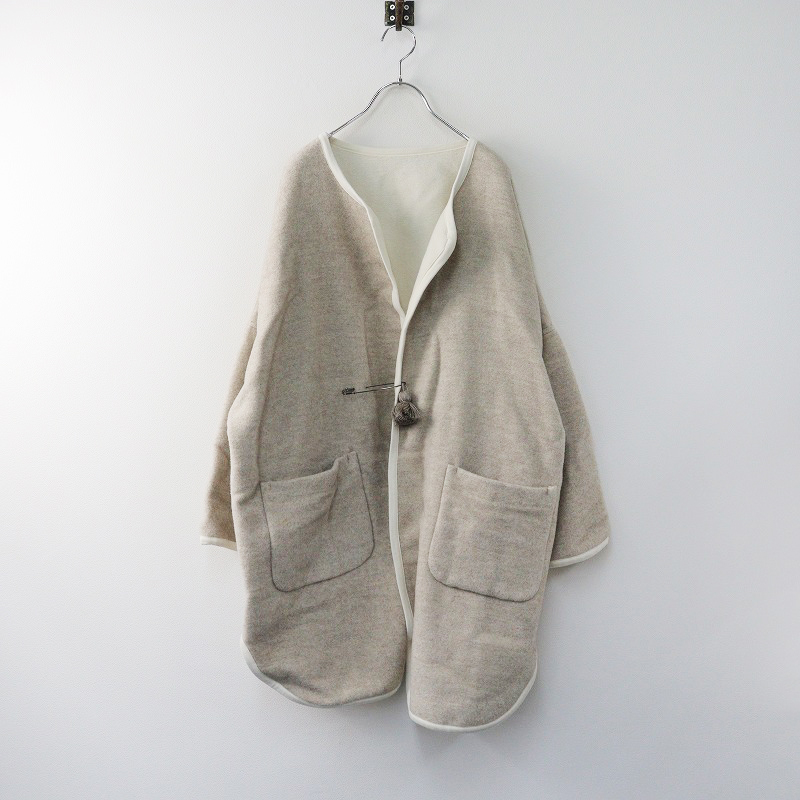 プリスティン PRISTINE ウール混 フリンジピン付き ノーカラーコート