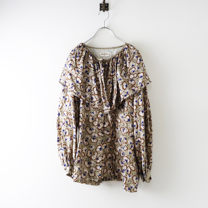 ブノン BUNON シルク 花柄プリント+刺繍 ワイドフリルカラー シルクブラウス