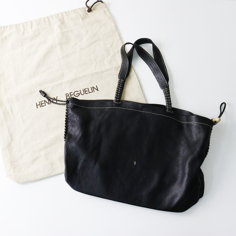 エンリーベグリン Henry Beguelin オミノ刺繍 シボカワレザー トートバッグ ブラック