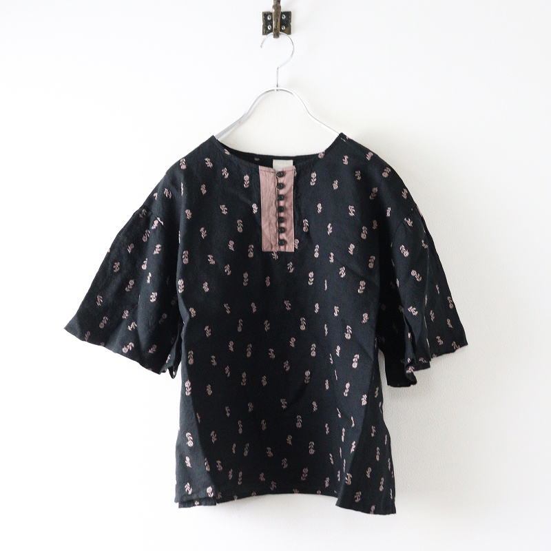 宝島染工 TAKARAJIMA SENKOU 天然染め シルクリネンギャザーブラウス