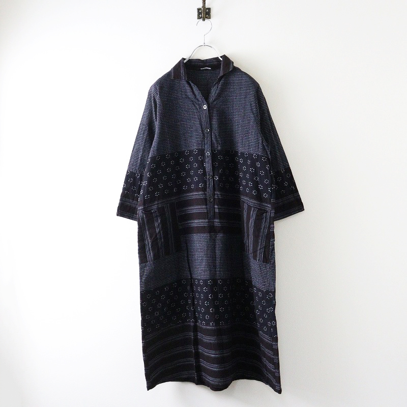 儀右ヱ門 ギエモン GIEMON 久留米絣 切替 襟付きシャツワンピース