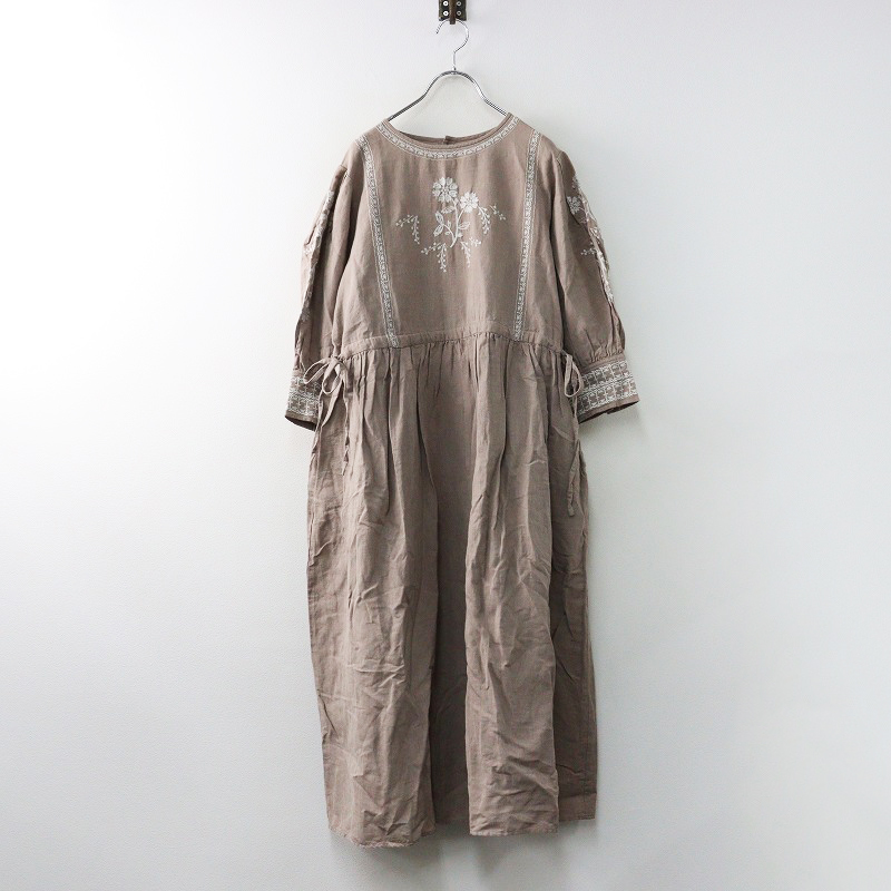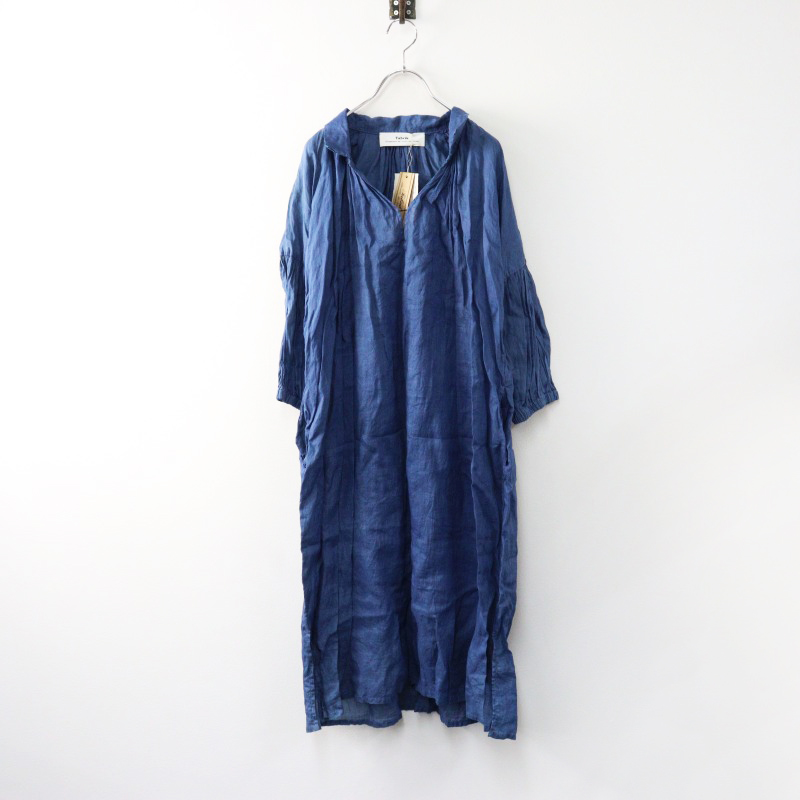タブリク Tabrik ラミー100% 襟付きギャザーロングワンピース