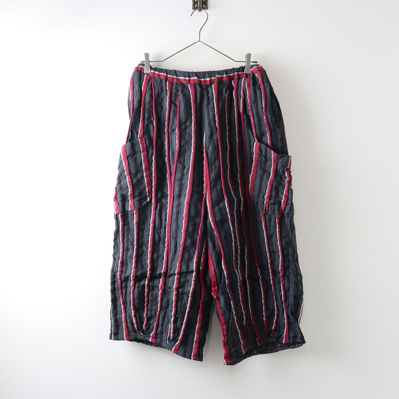 ツムグ tumugu リネンストライプ8分丈バルーンパンツ