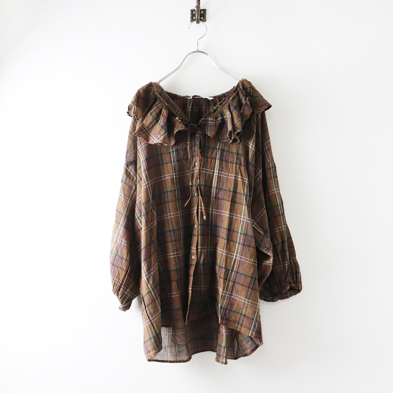 タンディ 雨のリュウグウ コットン包釦 ギャザープルオーバーブラウス
