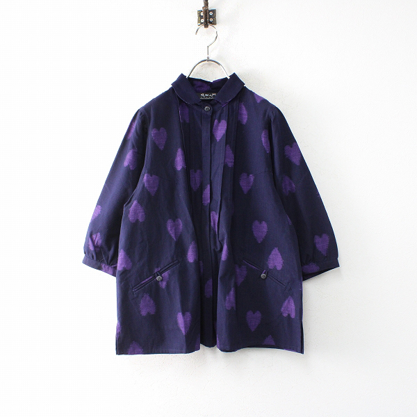 :儀右ヱ門 ギエモン GIEMON ハートジャガード インディゴピンタック裾フレアブラウス