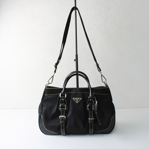 :PRADA プラダ レザー×ナイロン 2way ハンドバッグ ショルダーバッグ