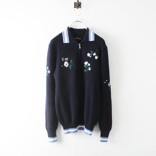 :AD2017 tricot COMME des GARCONS トリココムデギャルソン 花刺繍 ハーフジップ ウールリブニット