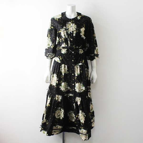 :PINK HOUSE ピンクハウス 花柄 リボン ティアードフレア シャツワンピース