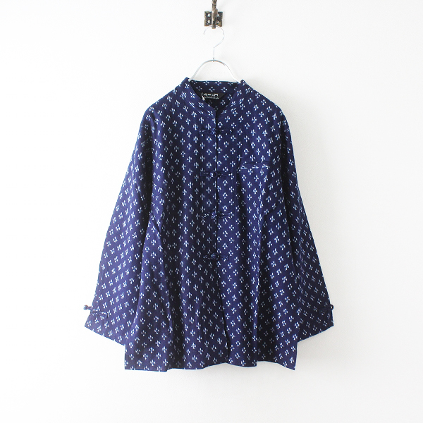 :儀右ヱ門 ギエモン GIEMON カ555 藍絣 かすり チャイナボタン スタンドカラーシャツジャケット