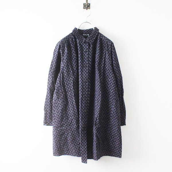 :儀右ヱ門 ギエモン GIEMON シ519 古結吉絣 総柄 シャツワンピース