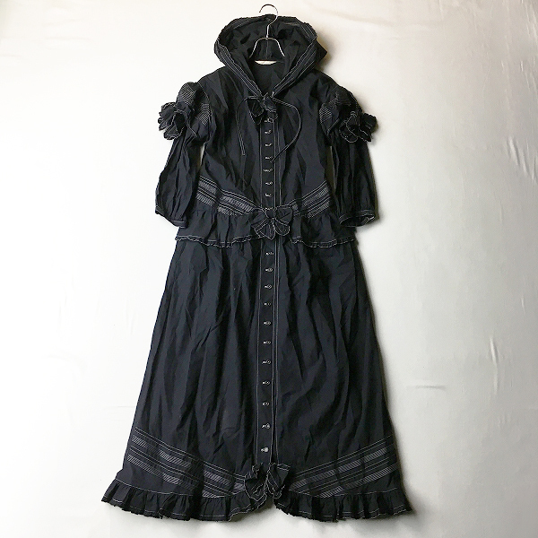 :PINK HOUSE ピンクハウス ピコフリル ホワイトステッチ フード付き マエアキワンピース