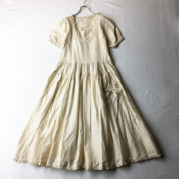 :PINK HOUSE ピンクハウス 綿ローン ピコフリル装飾 ヨークギャザーフレアワンピース