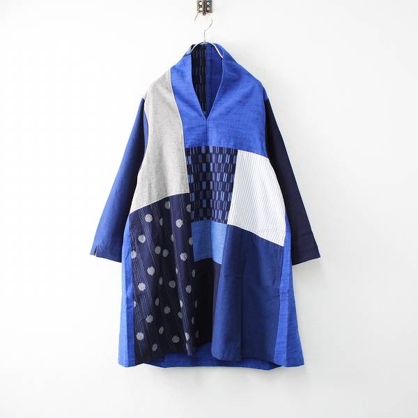 :儀右ヱ門 ギエモン GIEMON 藍染 インディゴ パッチワーク フレアワンピース