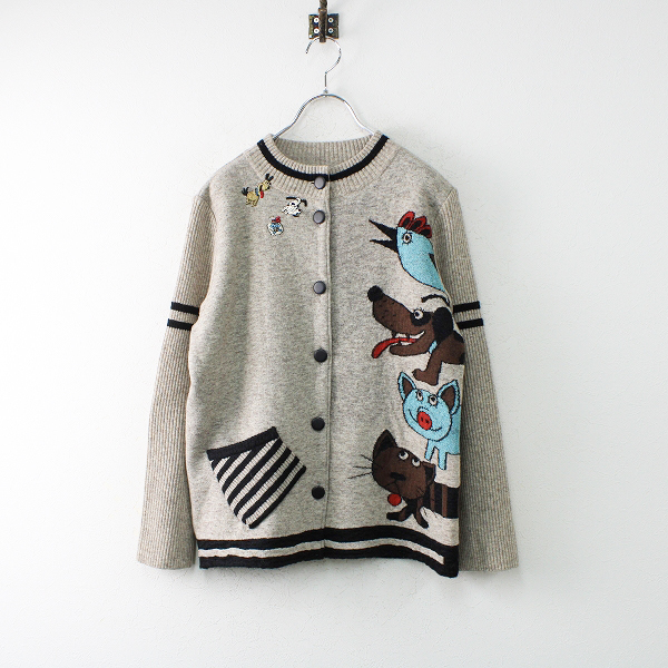 :OLLEBOREBLA アルベロベロ トリ イヌ ブタ ネコ 柄 ウールニットジャケット
