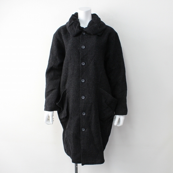 :Sensounico センソユニコ 縮絨ウール ギャザー衿 シングルロングコート