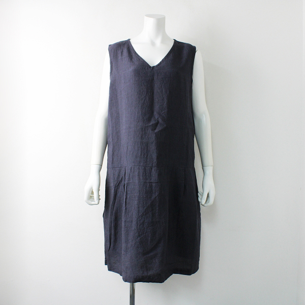 :ヤンマ産業 リネン Vネック タック ノースリーブ ワンピース