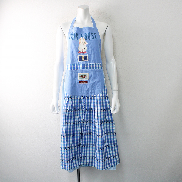 :2020SS PINK HOUSE ピンクハウス うさぎプリント ギンガムチェック切替 ピコフリルエプロン