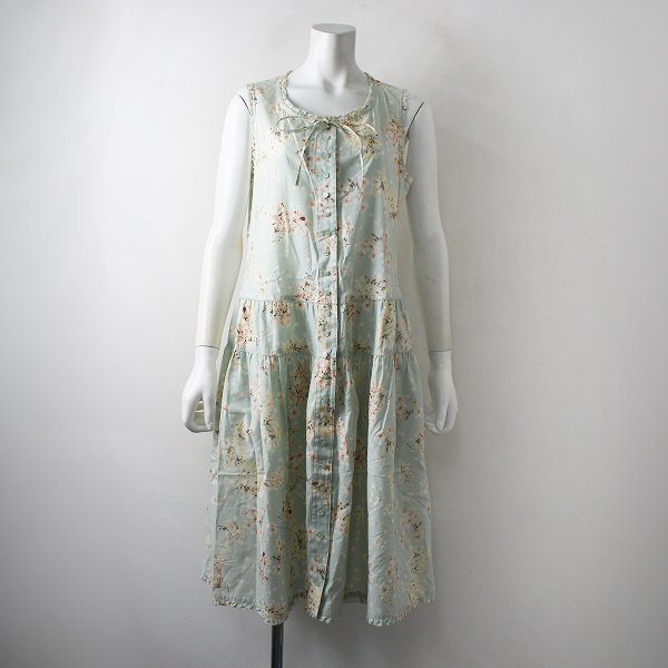 :PINK HOUSE ピンクハウス ピコフリル 桜柄 綿ローン ノースリーブワンピース