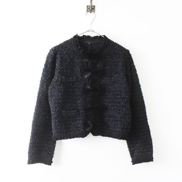 :to be chic トゥービーシック ミンク装飾付き ニットツイードノーカラージャケット