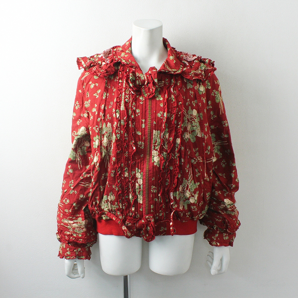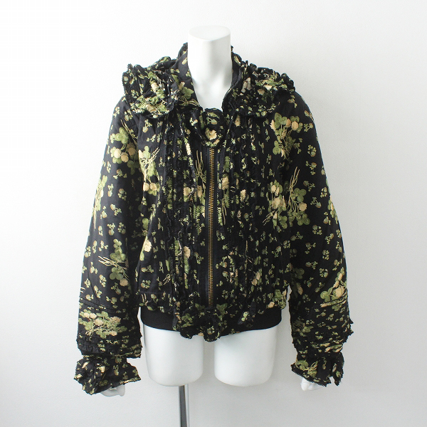 :PINK HOUSE ピンクハウス 花柄 ピコフリル ピンタック フード付 ジップアップブルゾン
