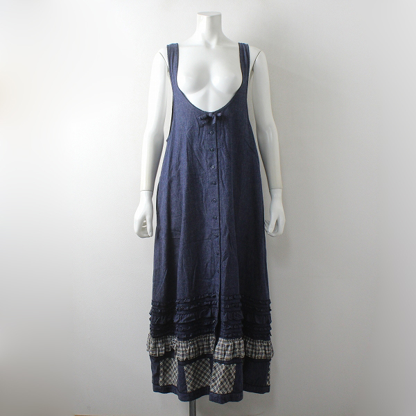 :KANEKO ISAO WONDERFUL WORLD カネコイサオ ワンダフルワールド ピコフリル チェック デニムワンピース