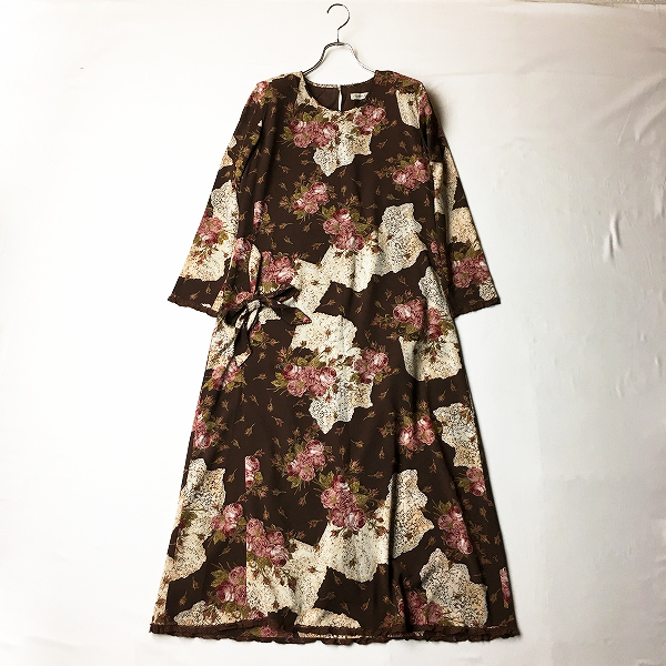 :KANEKO ISAO カネコイサオ 薔薇柄 袖レース ピコリボン ちりめん ワンピース