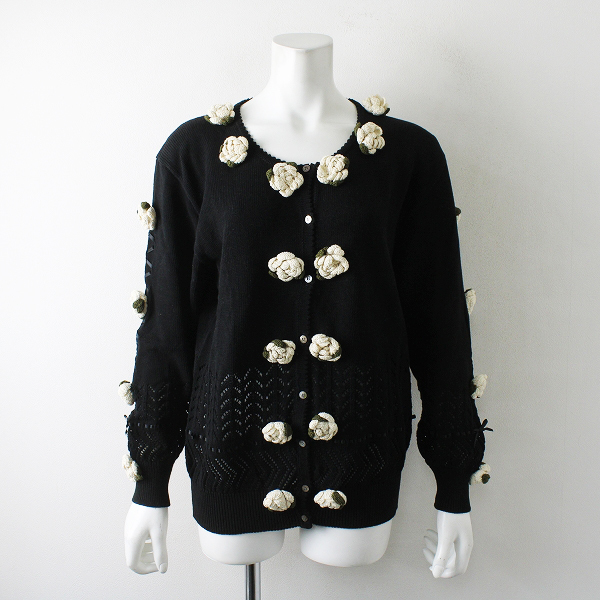 :PINK HOUSE ピンクハウス 袖リボン フラワーモチーフ 透かし コットンニットカーディガン