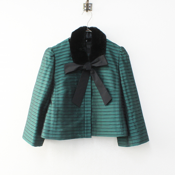:大きいサイズ TO BE CHIC トゥービーシック ファー付 タックボーダージャケット