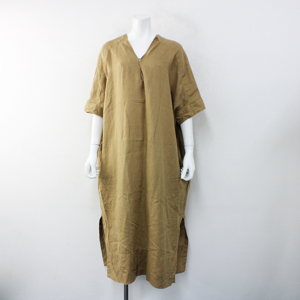 :2021SS FRAMeWORK フレームワーク 麻Vネックスリットワンピース
