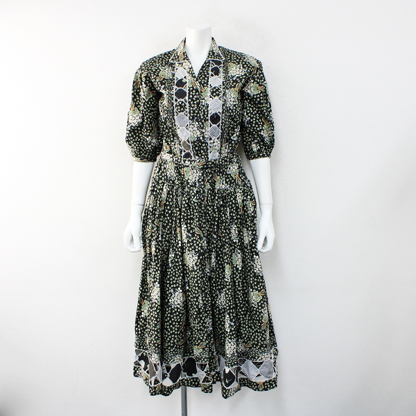 :PINK HOUSE ピンクハウス ブーケフラワープリント パッチワーク ティアードフレア ワンピース