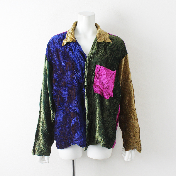 :ISSEY MIYAKE イッセイミヤケ ベロア素材 シワ加工 クレイジー配色 オープンカラーシャツ