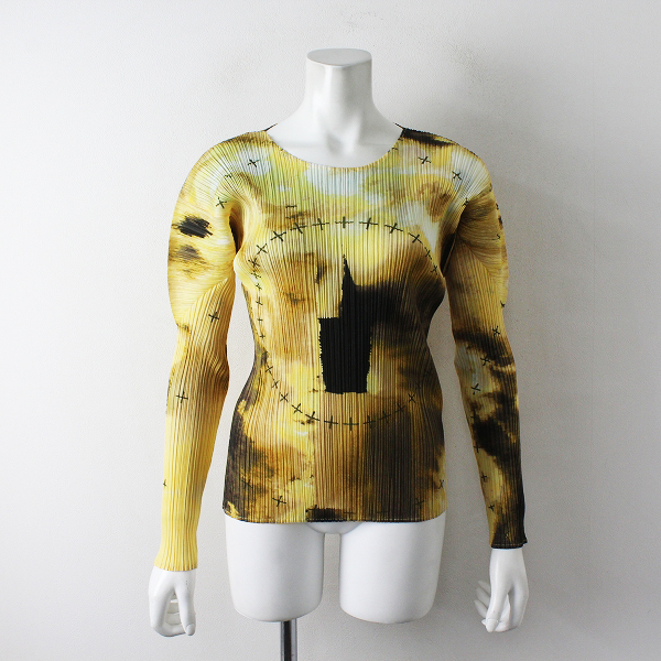 :ISSEY MIYAKE イッセイミヤケ PLEATS PLEASE プリーツプリーズ プリント クルーネック長袖トップス